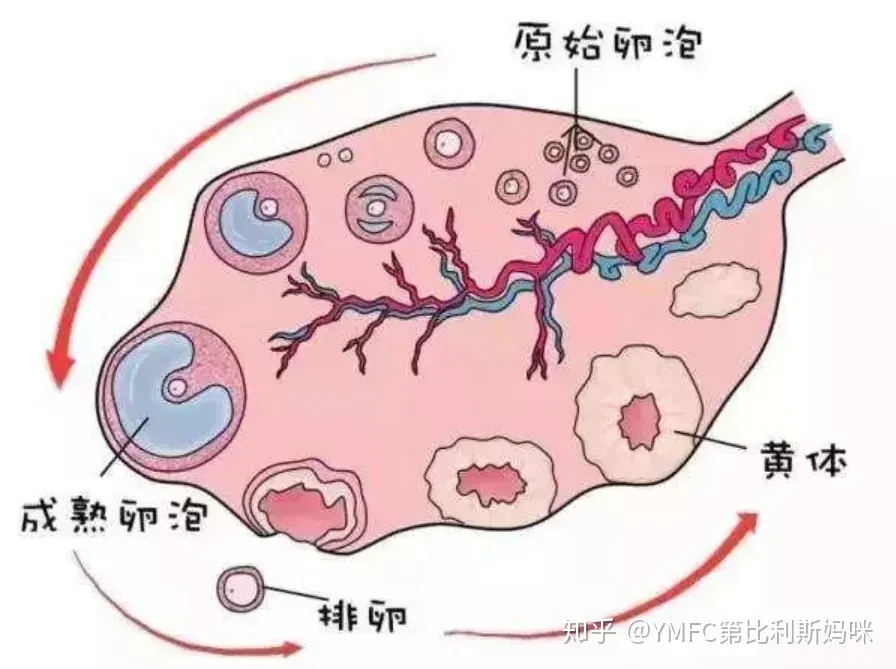 青春期阶段随着体内激素的分泌,月经来潮时,基础卵泡也开始随之发育,每个月都会有一批始基卵泡发育成生长卵泡。